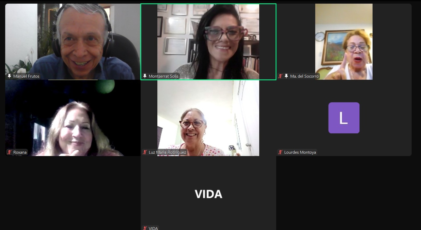 Primera sesión de hilos de plata online. Aparecen las maestras: Montserrat Solis, Socorrito Cortés y Roxana Zubieta.
